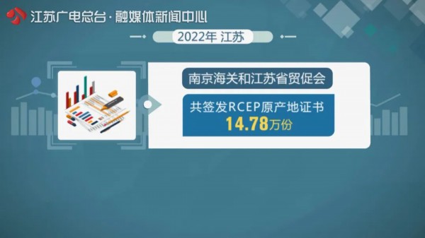 2022年,南京海关和江苏省贸促会共签发RCEP原产地证书14.78万份,出口货值483.4亿元,居全国首位,预计企业可享受目的国关税优惠近4亿元。今年,江苏还将进一步完善智慧应用公共服务平台功能,进一步引导企业深化和RCEP成员国的产业合作,帮助企业更好地引进来、走出去。