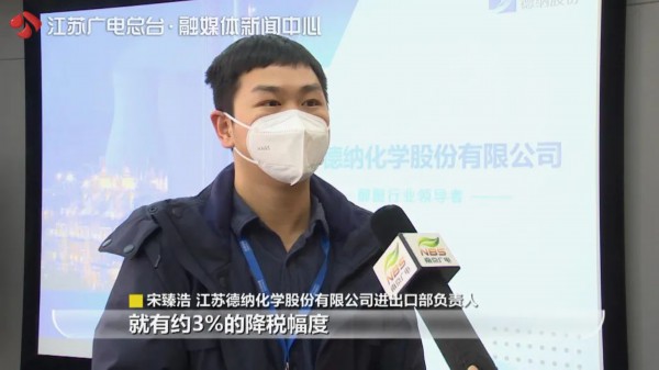 “我们公司仅出口日本这一个国家的产品就有约3%的降税幅度,一年下来为我们公司带来了约350万利润。”江苏德纳化学股份有限公司进出口部负责人宋臻浩说。