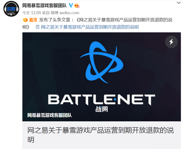 2月1日,网易暴雪游戏客服团队发布了《网之易关于暴雪游戏产品运营到期开放退款的说明》,2月1日11时起,针对玩家在“暴雪游戏产品”中已充值但未消耗的虚拟货币或未失效的游戏服务开放退款申请通道。