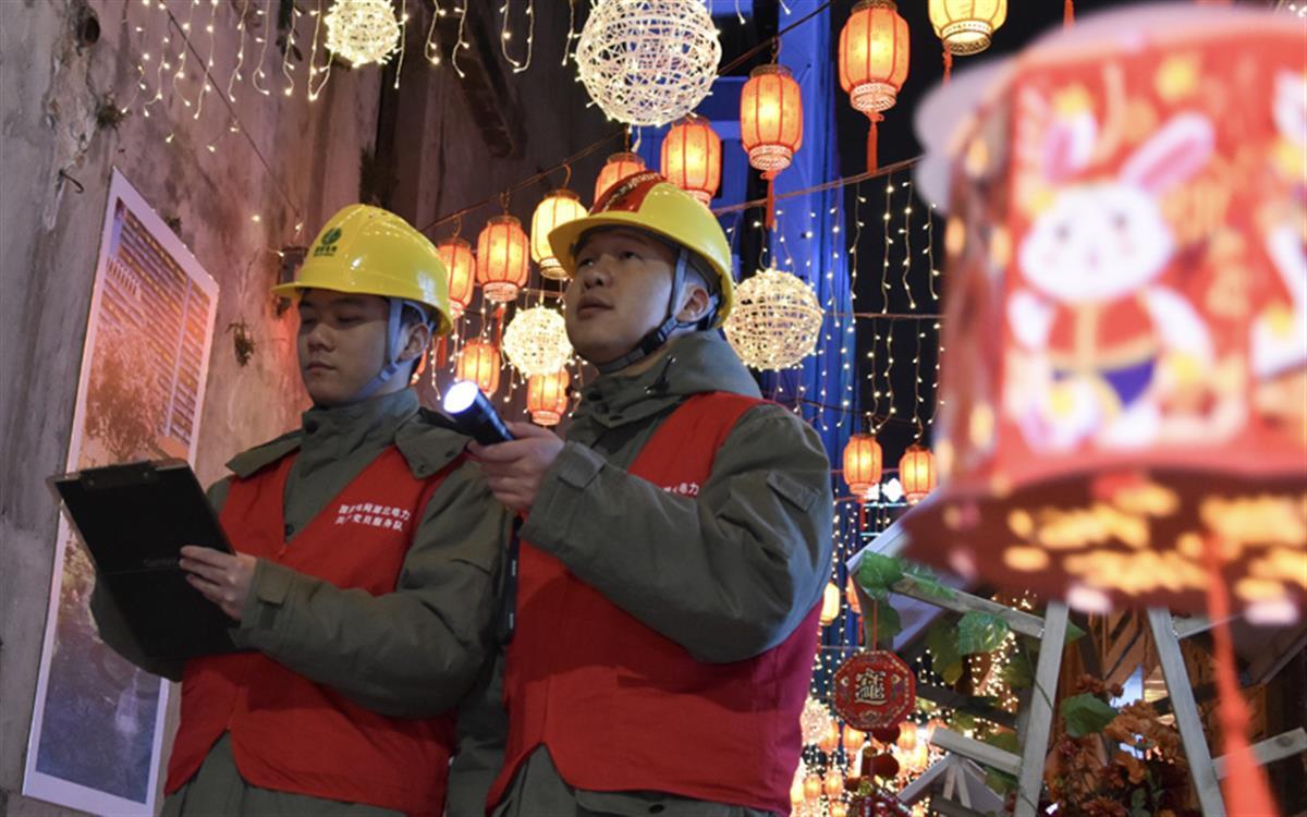 2月4日,武汉市江岸区延庆里举办元宵活动当晚,国网武汉供电公司汉口客户服务中心车站供电服务站外勤组组长孙玉龙和他的同事,来到延庆里检查用电线路,在灯火阑珊中,用他们的方式守护百年小巷里的元宵夜。