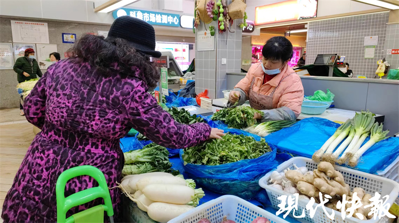 元宵节过后,记者在南京科巷新市集看到,蔬菜区域摊位上多了不少时令蔬菜,有的刚被雨水打湿,看起来青翠欲滴、绿意融融。