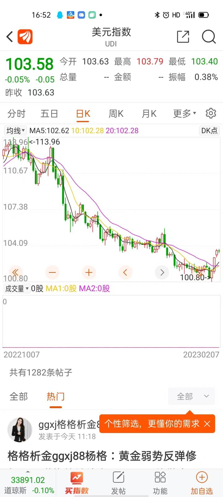 受这一消息影响,上周五美元指数瞬间跳涨,最高升至103,本周一最高达到103.77,比2月2日最低点100.8涨了2.95%。