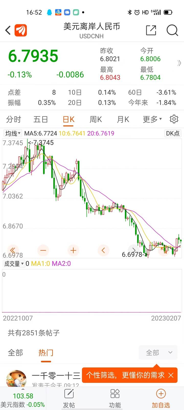 上周五,美元对离岸人民币一天暴涨680点,三天时间最多反弹了1100多点。最近两天,虽然美元有所震荡回落,但对离岸人民币仍在6.8附近。