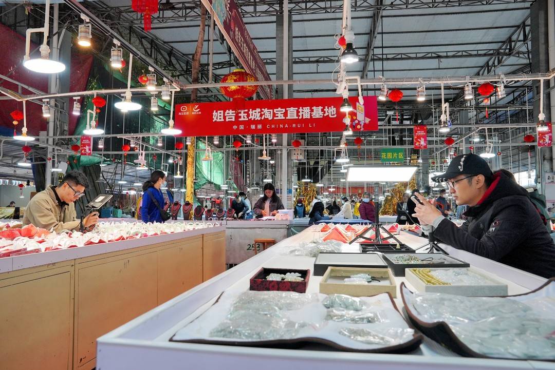 记者了解到,瑞丽市三面与缅甸接壤,是中国珠宝玉石集散地之一。2018年,淘宝直播在瑞丽成立了翡翠直播基地。如今,玉石直播已经成为瑞丽市的重点产业之一。