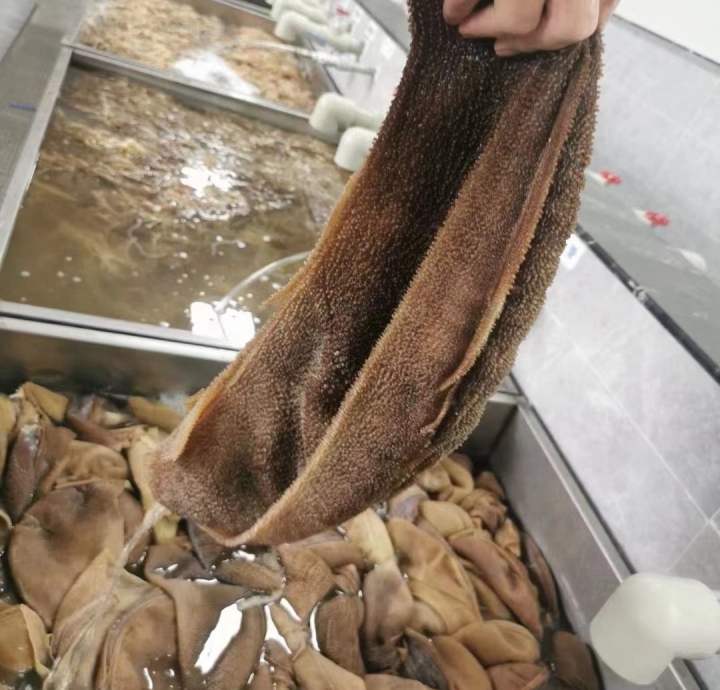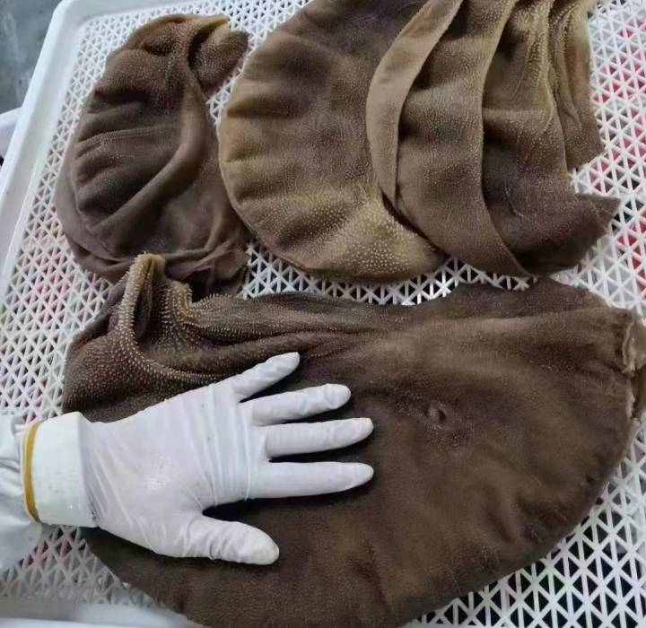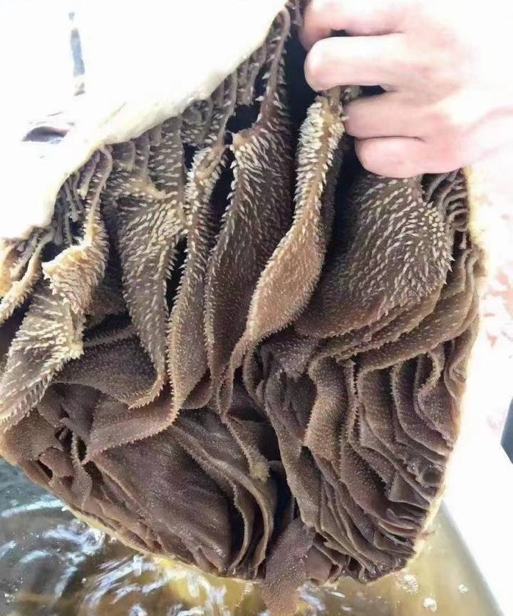 最后一种黑整肚,其实也是牛的百叶胃,只是带了底板,分量更重,价格最便宜,现在批发价是27元/斤。