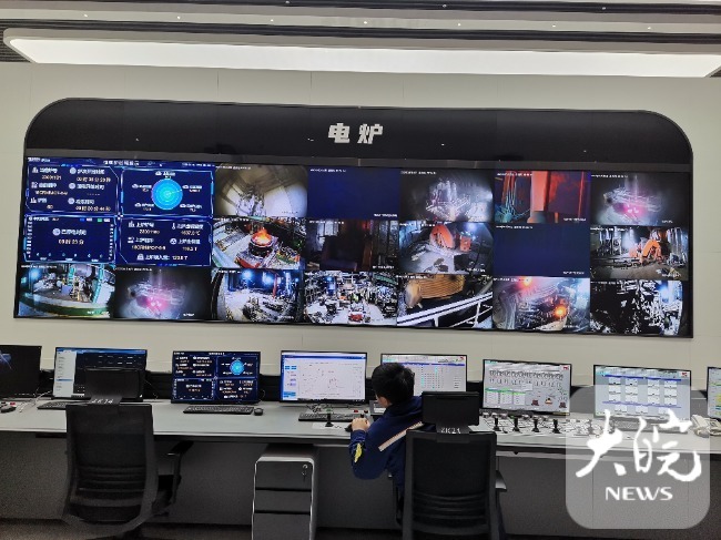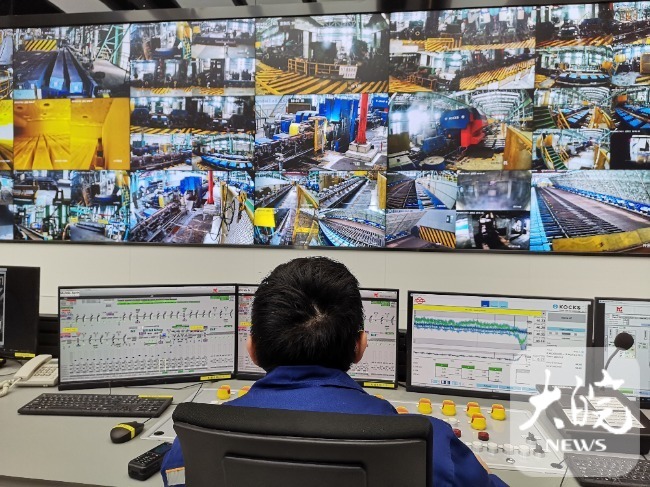 稍后,记者一行来到马钢特钢智控中心。中心里,数十面大屏幕在三面墙上排开,上面标注着每个监控点位的信息。下面的中控台是一字排开的数十台电脑,工作人员坐在工位上,眼睛盯着电脑屏幕,并不时和一线生产现场进行沟通。