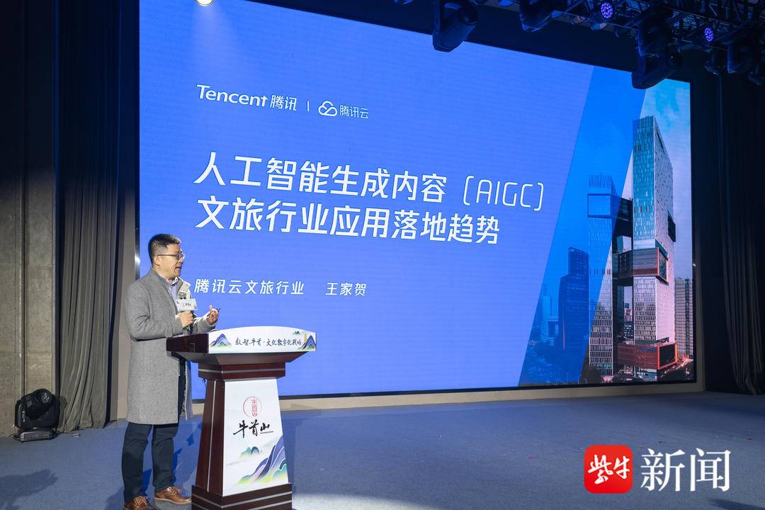 组建文化数字化创新联盟,对牛首山乃至整个文旅行业意味着什么?联盟的成立又将如何赋能文旅行业高质量发展?在主旨演讲环节,专家学者们提出各自的看法。腾讯云文旅行业高级专家王家贺以“数字科技星图”开篇,带来了题为“人工智能生成内容(AIGC)文旅行业应用落地趋势”的精彩演讲,并在现场演示了AIGC谱曲、制图、合成影像等全场景应用,让现场观众眼界大开。他表示:“数字文旅是非常重要的突破口,也是文旅企业创新的方向,AIGC技术将支撑数字文旅在文创产品、导游讲解、营销服务和客户服务等多领域开发应用,未来在数字文旅这一片蓝海,期待更多的文旅企业前去开拓”。