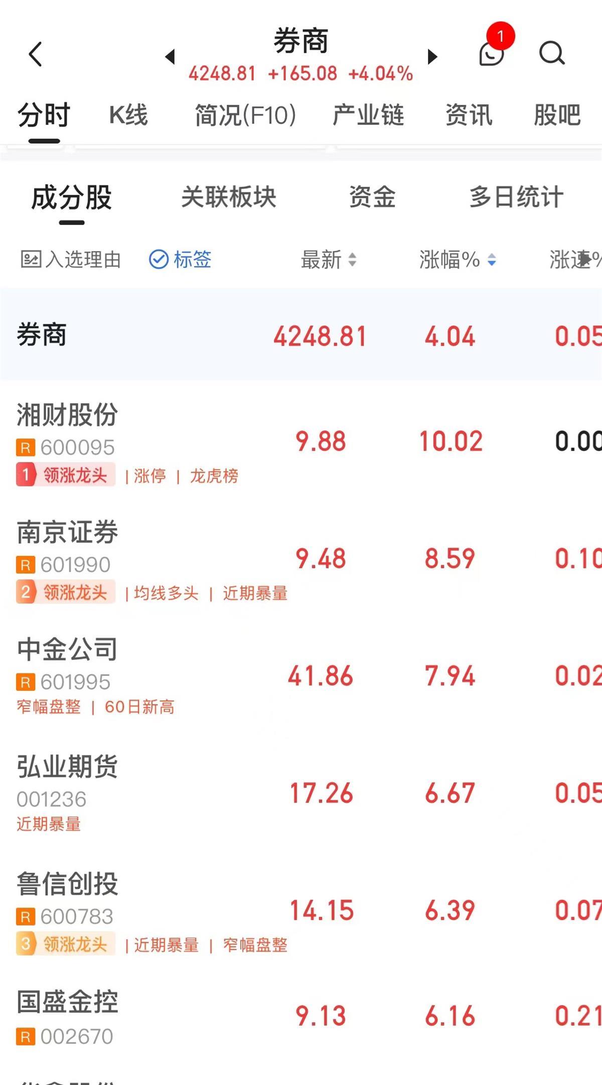受全面注册制消息影响,券商板块涨幅居前。截至20日收盘,湘财股份涨停,南京证券、中金公司、国盛金控、华鑫股份、首创证券涨超5%,东方证券、招商证券、国元证券、光大证券等纷纷跟涨。机构人士普遍认为,随着全面注册制的落地,券商板块是最直接的受益者。