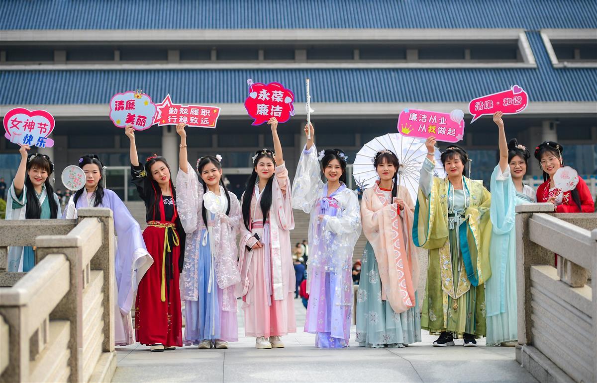 3月3日下午,湖北省博物馆迎来了20多名“汉服仙子”,她们是曾经参建过湖北省博物馆项目的女建设者、中建三局总承包公司湖北公司的女建设者。