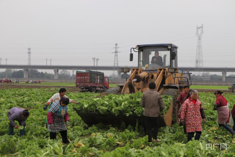 村民在菜田里采收央广网记者王颖摄