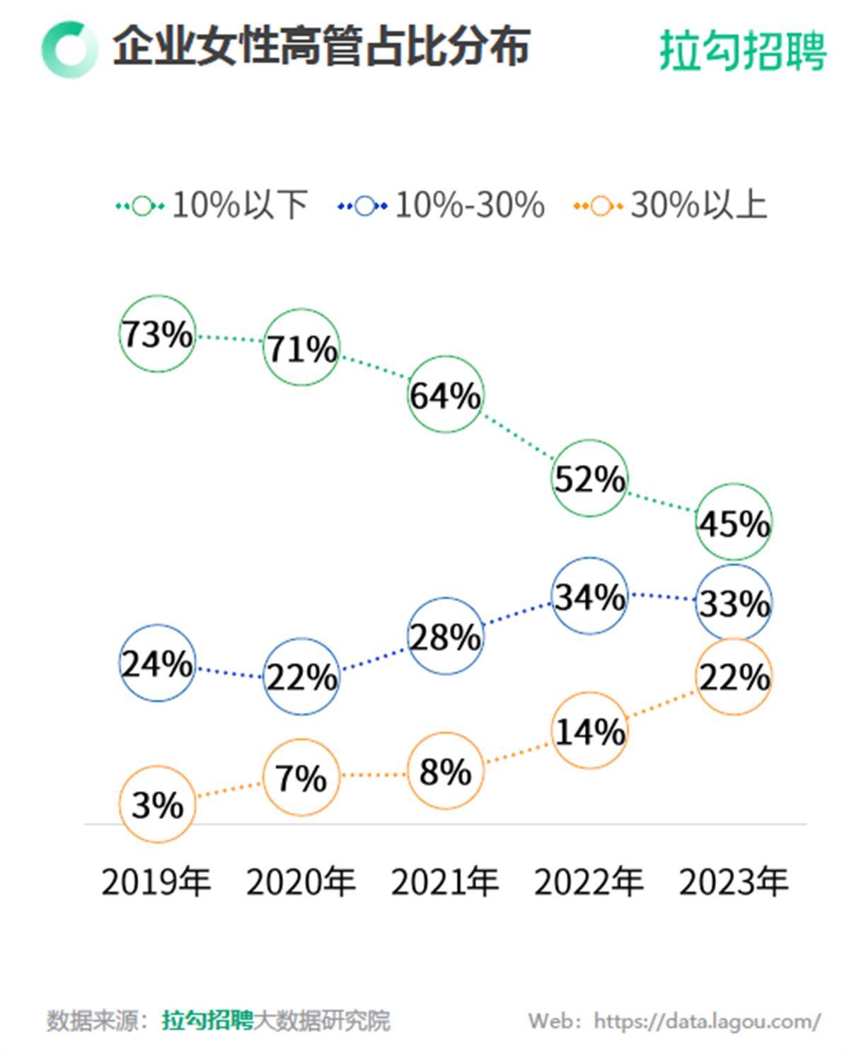 《一线及新一线城市职场女性洞察报告》分析企业女性高管占比数据