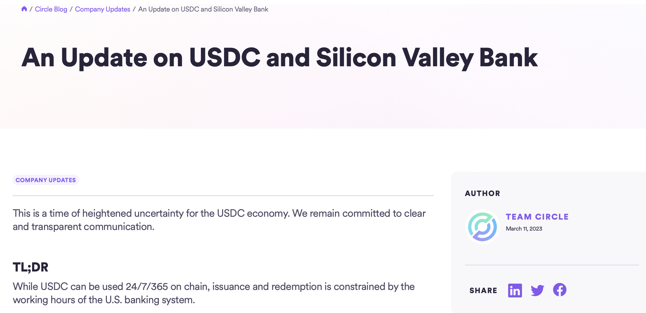 Circle发布的博客文章,图片来自Circle官网