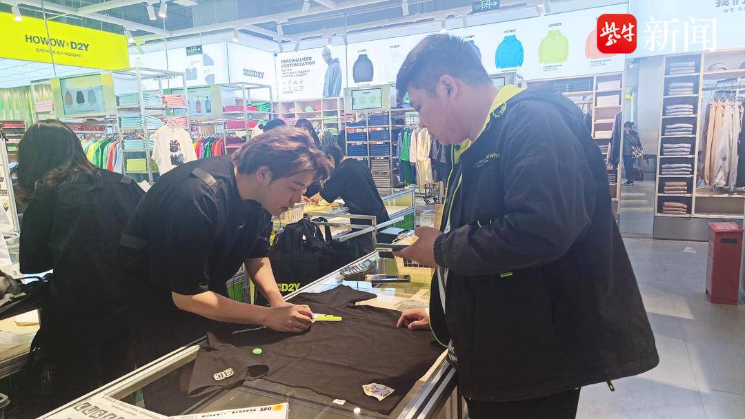 “顾客可以在服装区挑选基础的衣服款式,然后到饰品区挑选自己喜欢的服装配饰,最后拿到工艺制作区和设计师沟通制作想法。如果在挑选过程中有困难,设计师也会提供搭配建议。最终制成的T恤一般不超过200元,卫衣不超过300元,从选衣到成衣一般在2小时左右。”该店铺经理刘梦宇向记者介绍道。