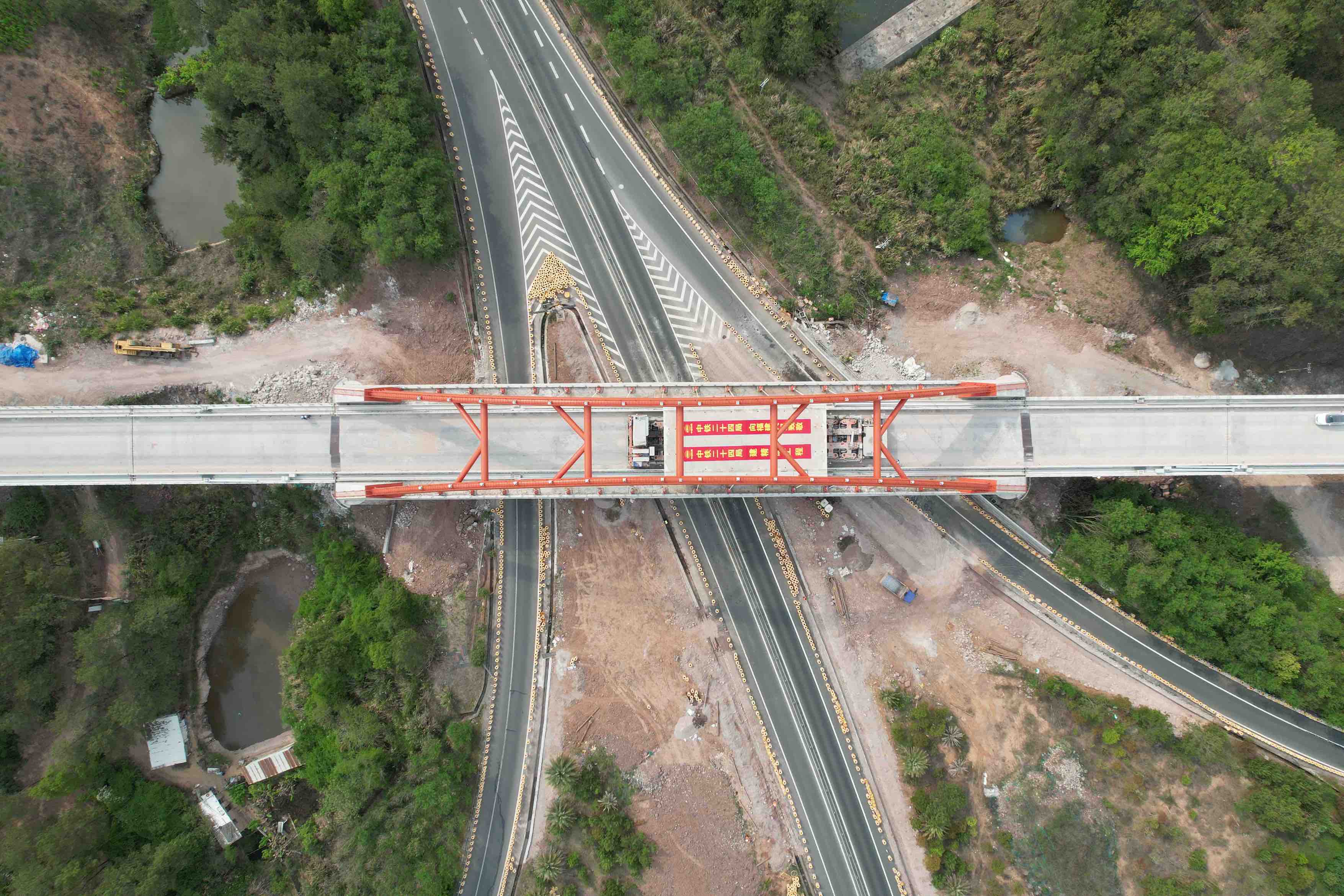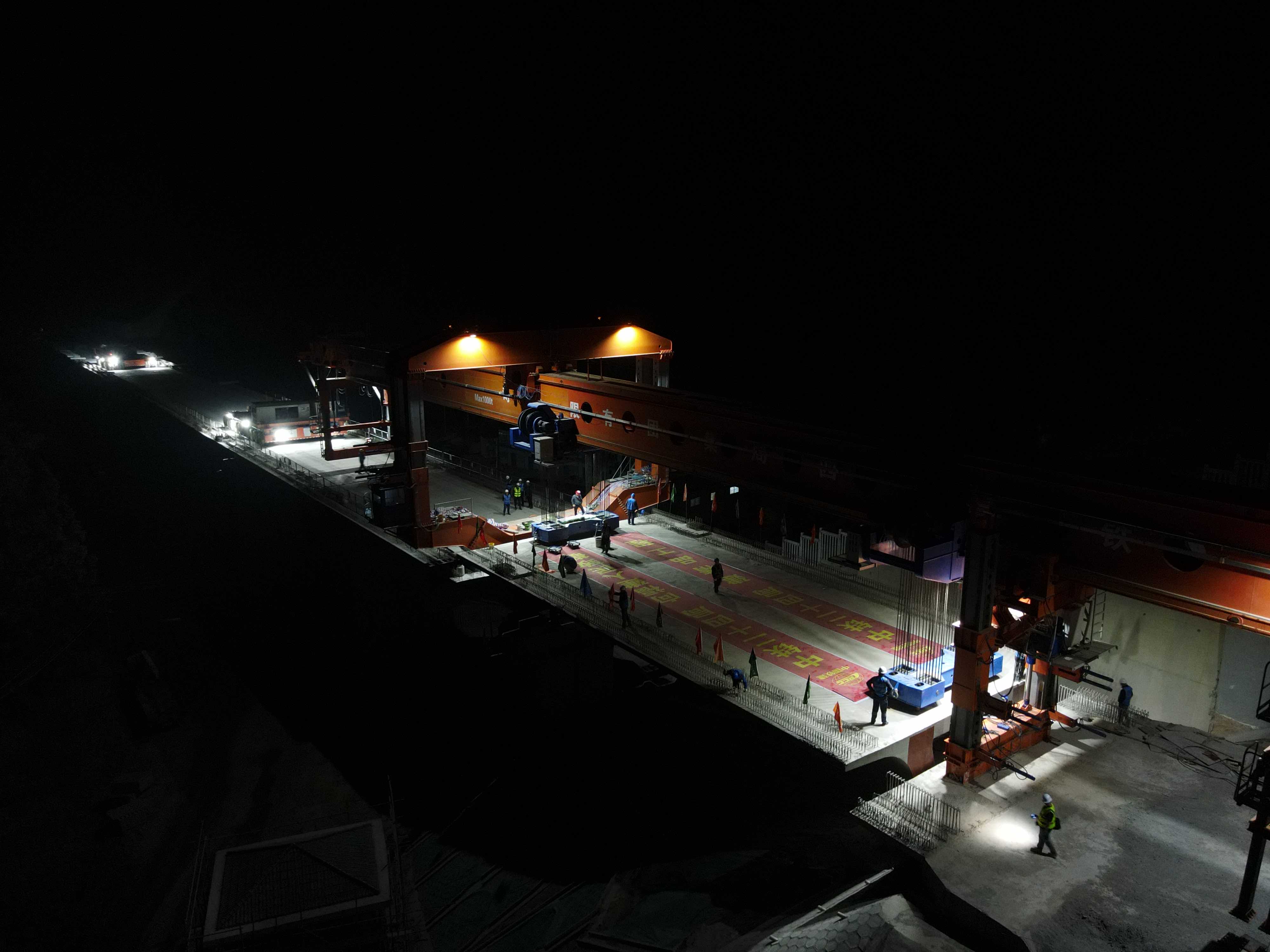 架梁项目负责人周涛介绍,在箱梁架设过程中,建设人员积极开展科技攻关,加大资源配置,投入了架桥机、运梁车进行架梁,24小时双班作业,并运用架桥机智能化监控系统和支座砂浆搅拌机等先进工艺,降低施工风险,缩短施工时间,顺利兑现架梁节点目标。