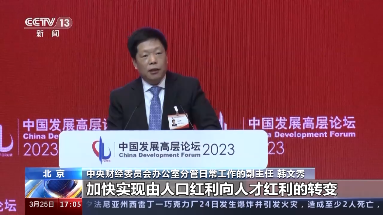 中央财经委员会办公室分管日常工作的副主任 韩文秀:向人才红利要发展动力,加快实现由人口红利向人才红利的转变,提高人力资本与产业升级之间的适配性。向创新驱动要发展动力,中国的研发投入规模已经居于世界前列,与GDP的比例达到2.55%,创新驱动发展的动能不断增强。向改革开放要发展动力,我们将不断完善社会主义市场经济体制,坚持高水平对外开放,提高全要素生产率,拓展生产可能性边界,为高质量发展创造更加广阔的空间。