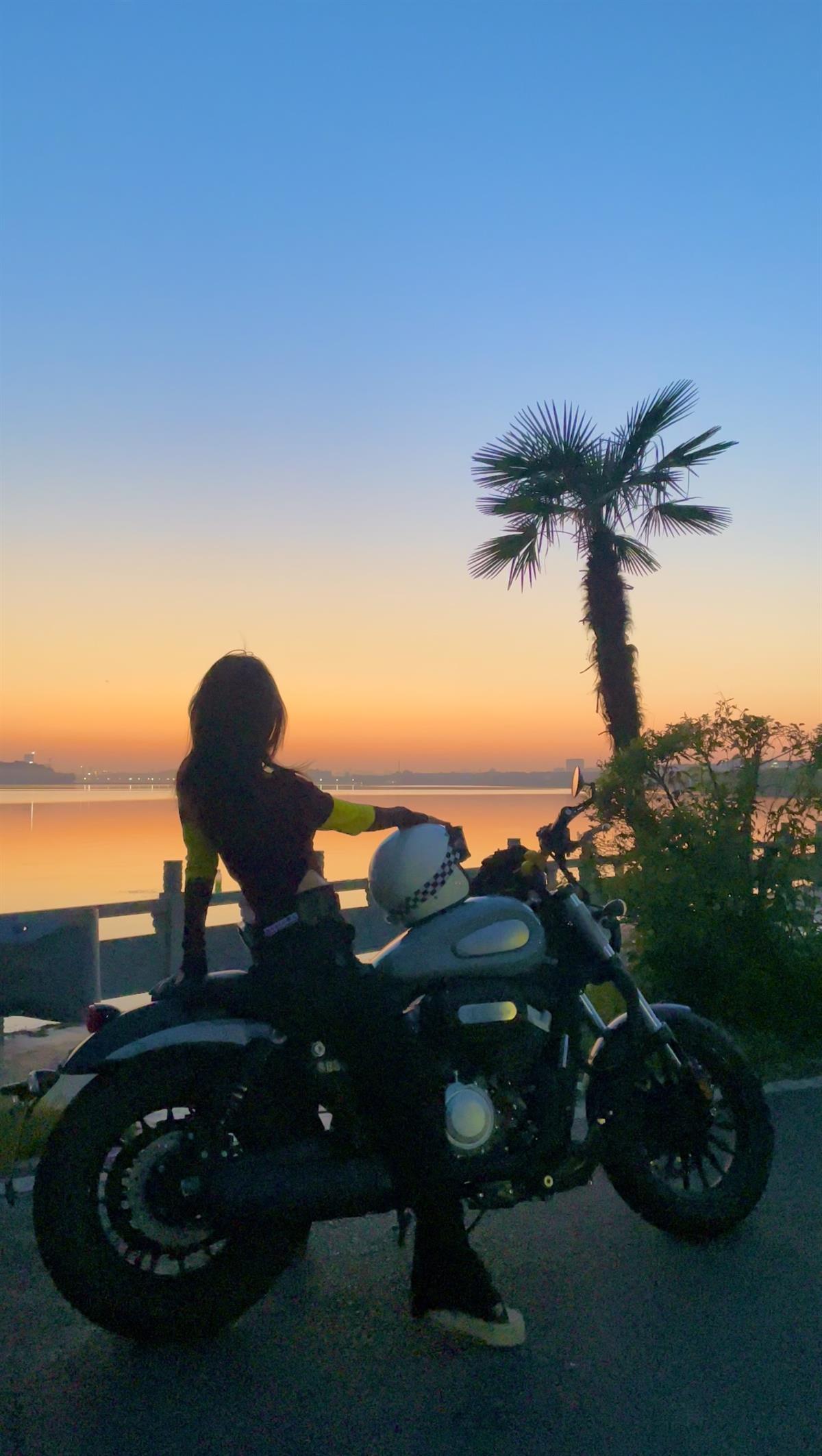 “佛系骑行,骑帅不骑快!感觉在摩托车上看到的风景,远比坐在车里时更美、更真、更有意境。”她说,能与夕阳作伴,与风同行,是她送给自己最好的生日礼物。