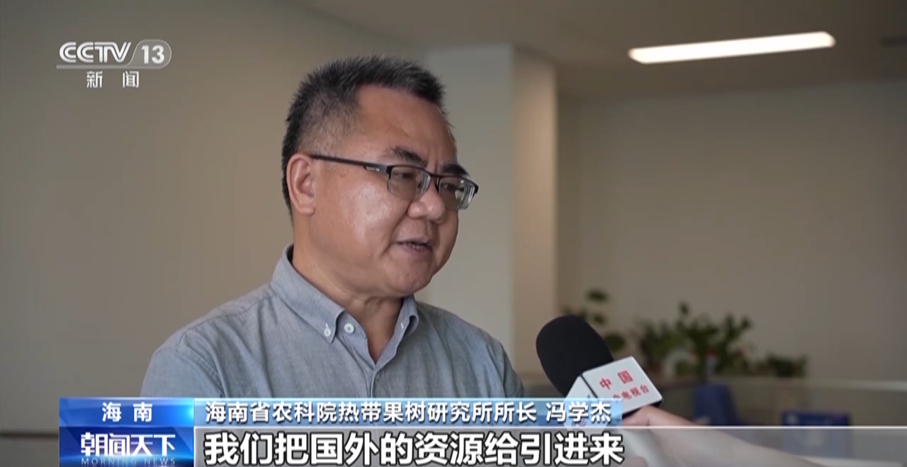 海南省农科院热带果树研究所所长冯学杰:我们把国外的资源给引进来,国外技术引进来,可以促使我们这边产业升级,优化我们的种植结构,产品结构,来丰富我们这边的消费。通过再创新之后,我们以技术(产品)的形式输出。