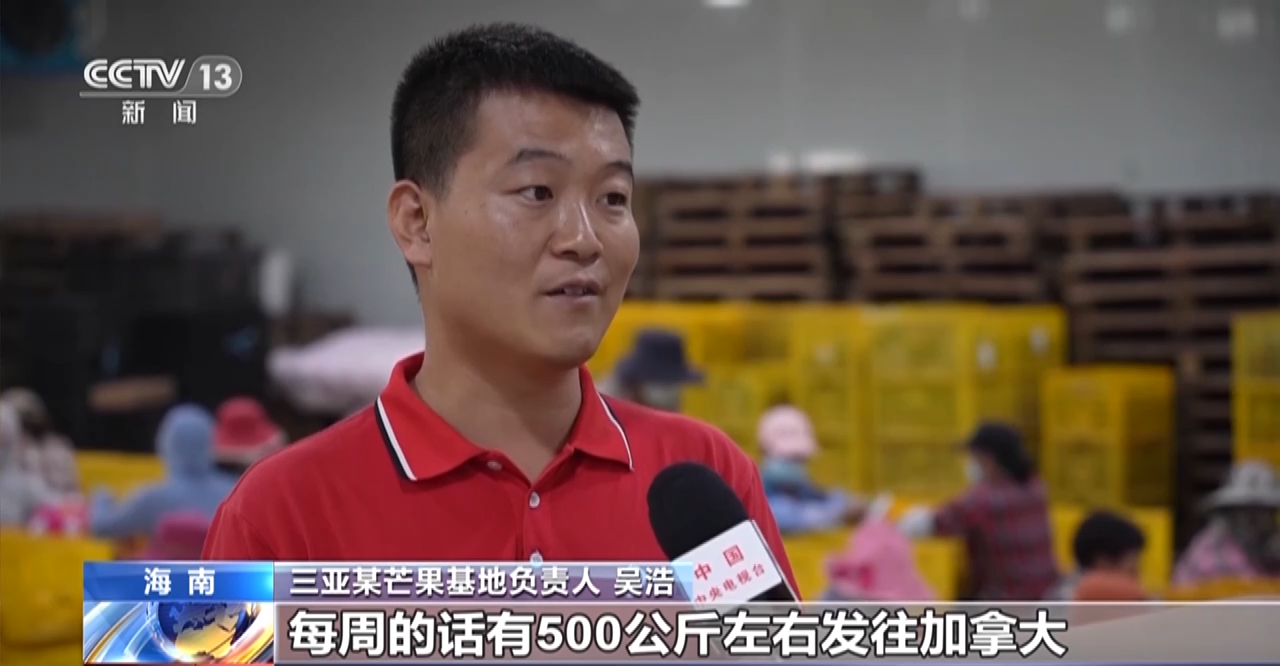三亚某芒果基地负责人吴浩:目前我们出口的量,每周有500公斤左右发往加拿大,下一步我们准备计划出口到美国,还有北美其他国家,每公斤在20美金左右。