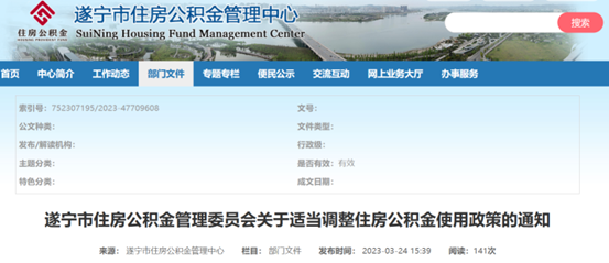 日前,遂宁市住房公积金管理中心发布关于《适当调整住房公积金使用政策》。