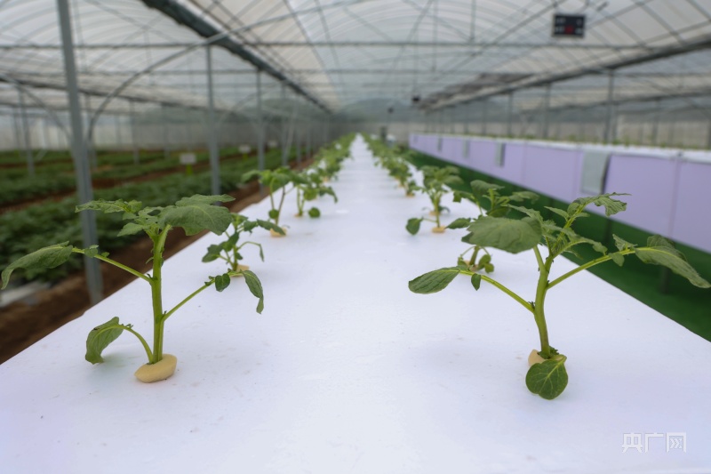 洋芋在纳米气雾栽培区生长(央广网记者俞烨摄)