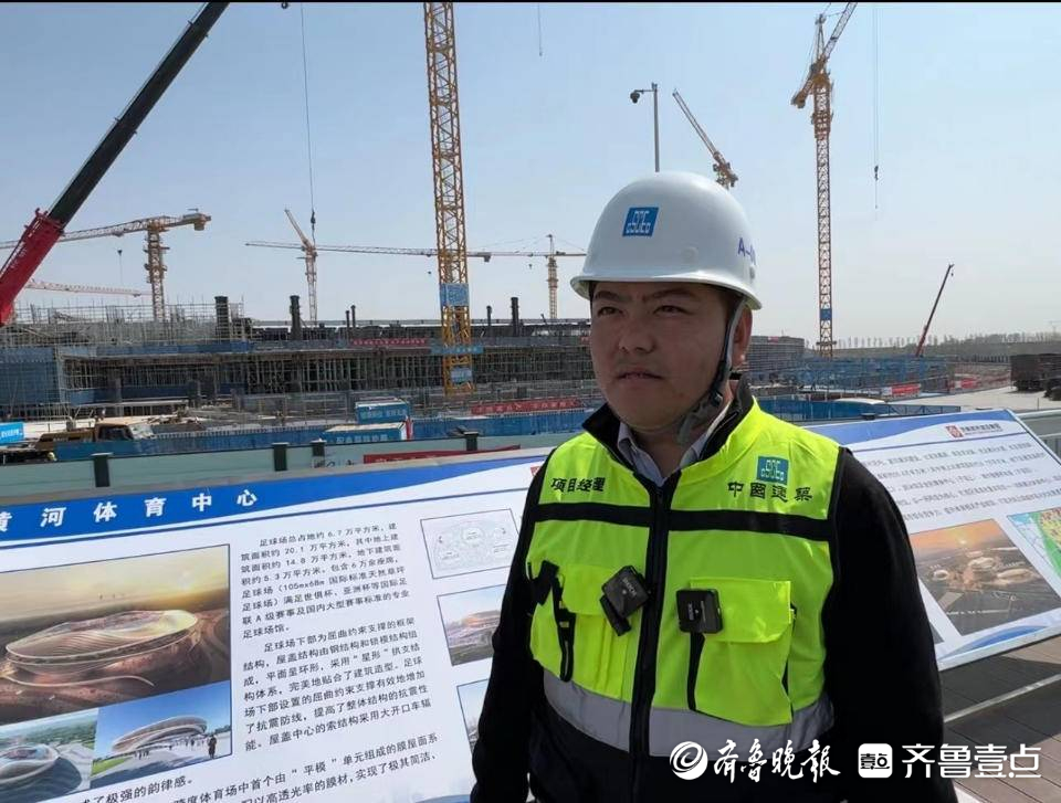 黄河体育中心专业足球场项目地处济南新旧动能转换起步区黄河沿岸,项目东距黄河仅1公里,远眺如同明珠般镶嵌在黄河边上。项目占地面积达63.28公顷,是黄河流域生态保护与高质量发展战略的重大工程。记者了解到,项目主要建设内容为一座地下1层、地上5层的专业足球场。项目负责人孔祥凯告诉记者,“目前项目正在有序施工,项目建成后济南市民在家门口就能欣赏到高水平国际足球赛事。项目预计于2024年竣工,是起步区统筹打造体育+产业的重要布局。”