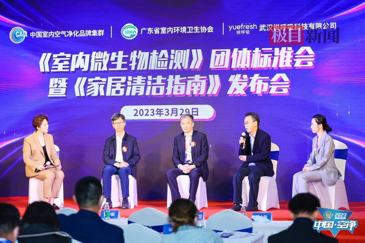 这次空净产业博览会暨高峰论坛,武汉悦呼吸科技有限公司联合中国品牌建设室内空气净化品牌集群、广东省室内环境卫生行业协会,提出了《室内微生物检测》团体标准,并发布了《家庭清洁指南》。