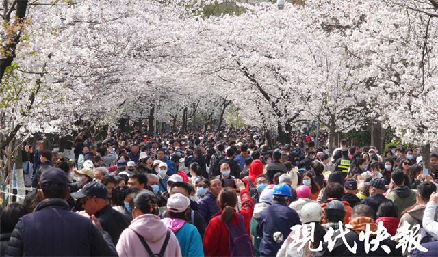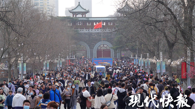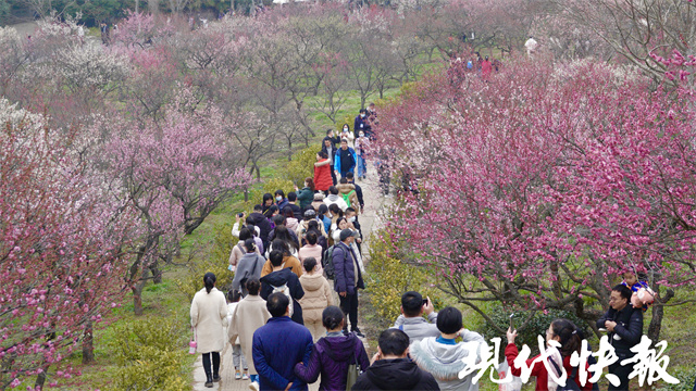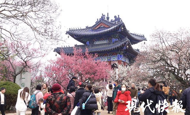 2月24日,梅花节期间,梅花山迎来了内地与港澳全面恢复通关后的南京首个入境旅游团,他们的第一站便直奔梅花而来。南京玄武湖景区也在樱花盛放时,迎来了截至目前今年客流量的峰值,“3月19日单日客流达到15.5万人次,正是樱花开得最好的时候。”南京玄武湖景区管理处办公室主任戎飞霞告诉现代快报记者,那个周末玄武湖景区对解放门采取了“只进不出”的限流措施。