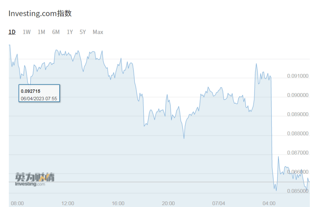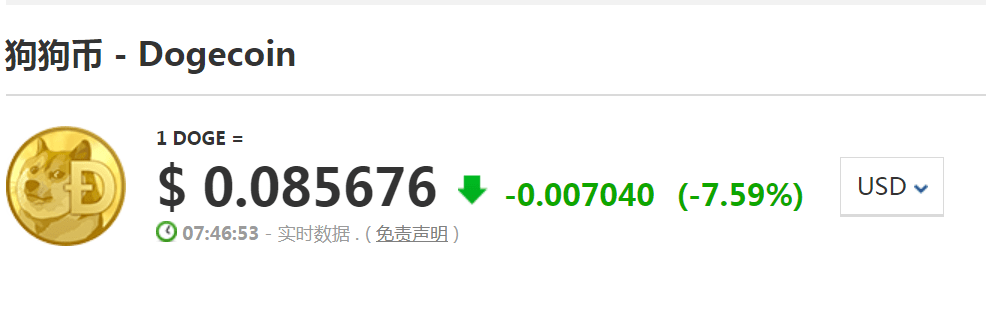 截至发稿,狗狗币报0.085美元,跌幅7.59%