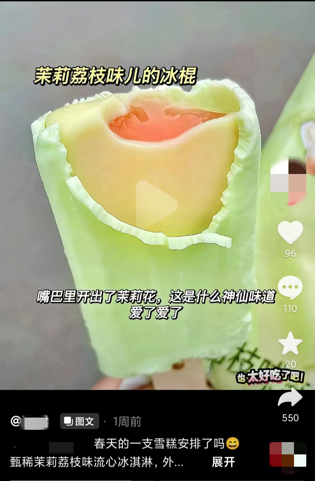此外,伊利一款荔枝味冰淇淋也深受网友喜欢,售价为6元左右。不少网友种草是因为这款雪糕的价格和味道,“不是雪糕刺客,喜欢茉莉味。”“谁能拒绝这个一口流心的冰淇淋呢?”