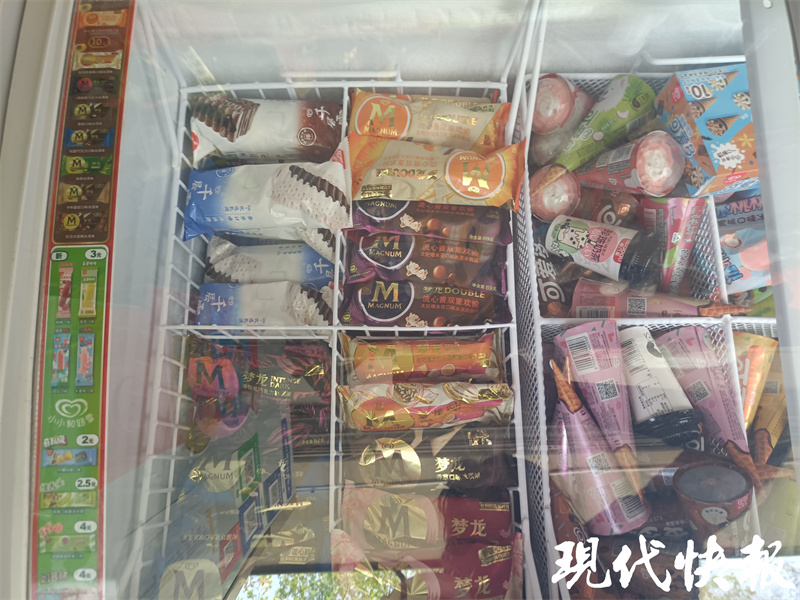 在估衣廊的一家雪糕店,店内的十个冰柜都已经满满当当。店员告诉记者,今年的消费旺季还没到来,还有些品种没有到货,“因为前段时间南京的温度比较低,所以雪糕销量还没上来。”她介绍,今年比较火的新品是德华魔巧巧克力,巧克力外皮,中间夹着巧克力曲奇颗粒,里面还有巧克力流心酱,售价5元一支。记者在某社交品台搜索发现,与之相关的种草笔记超1300篇,不少网友表示,相较于动辄几十元的“雪糕刺客”,还是这种价格亲民的雪糕吃起来更安心踏实。
