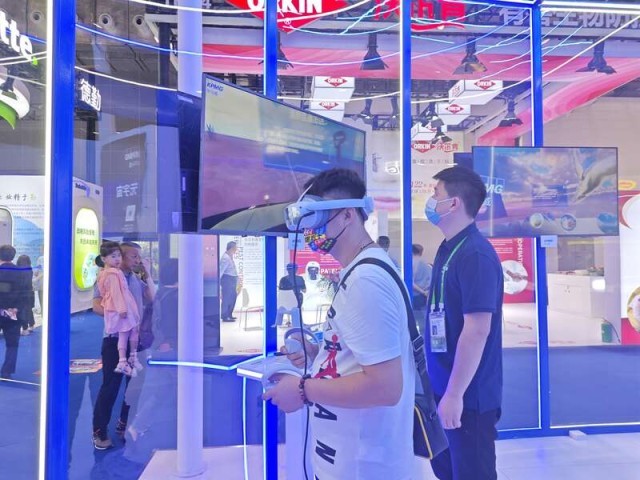 参观者体验云游消博会。中青报·中青网见习记者朱彩云/摄