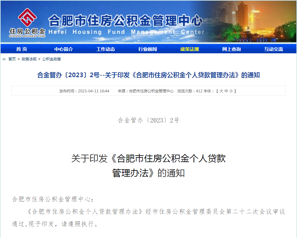 大皖新闻讯 据合肥市公积金管理中心网消息,近日,新修订的《合肥市住房公积金个人贷款管理办法》印发,自2023年4月17日起实施,有效期5年。新《办法》将进一步支持符合国家政策的多子女家庭首套首次住房贷款。