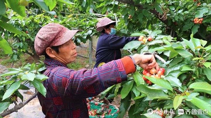 到了成熟收获之际,樱桃的采摘也需要大量人力。“我自家的果园里雇了七八个人,都是我们自己村里的村民,专门进行采摘,每人一天给一百多块钱。”李淑莲说。
