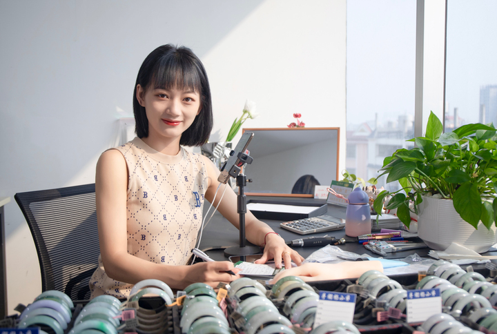 我们自己也在抖音做直播,叫做“手镯杨小乖”,粉丝有十几万,加上我一共有