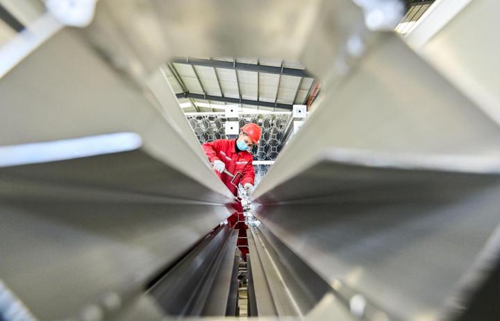 工人在山东省青州市经济开发区一家气体净化设备制造企业车间内作业(3月31日摄)。 新华社照片