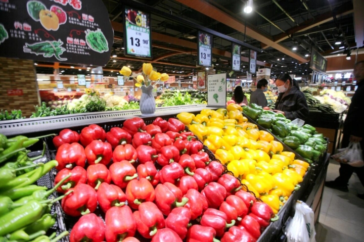 4月11日,顾客在山东省临沂市平邑县一家超市选购蔬菜。新华社照片