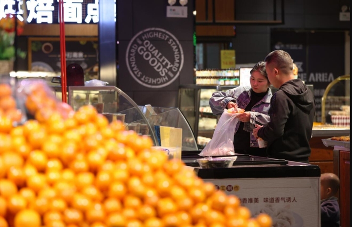 消费者在贵州省黔东南苗族侗族自治州岑巩县一家超市选购食品(3月15日摄)。 新华社照片