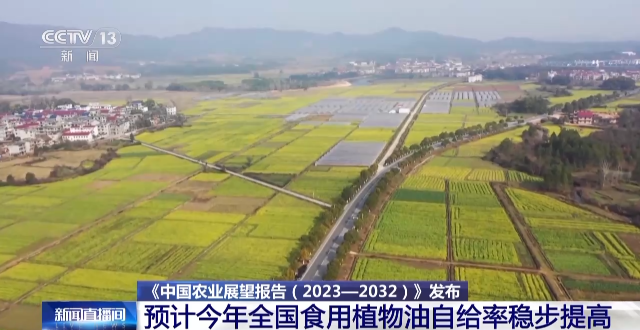 《中国农业展望报告(2023—2032)》今天(4月20日)上午发布,农业展望报告分析:2023年,我国油菜、花生和特色油料产量均明显增加,全年油料产量预计增长5.1%,全国食用植物油自给率继续稳步提高。
