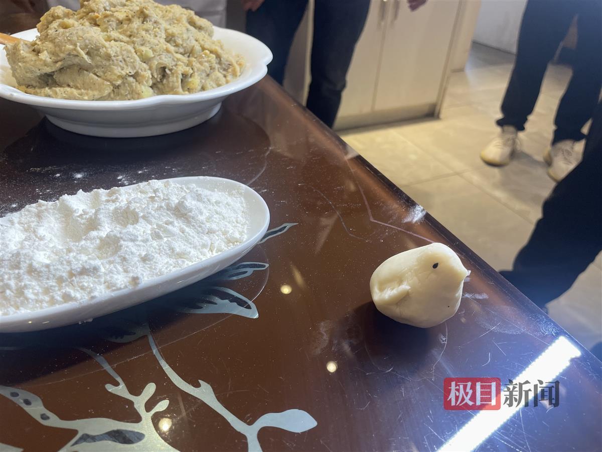 极目新闻记者在现场看到,丘大师捏出来的每一个面团几乎都是一样大小,称重均为2克左右。在点心开酥环节,只见丘大师一只手擀面,一只手卷皮,左右手同时开工,动作一气呵成,不过一两秒钟的时间,一只点心就“开酥”完成。丘大师还“就地利用”工具,仅使用两只勺子、两颗黑芝麻就捏出一只栩栩如生的小鸡。据介绍,丘大师曾经在多次宴会场所,现场制作出12生肖的象形点心。