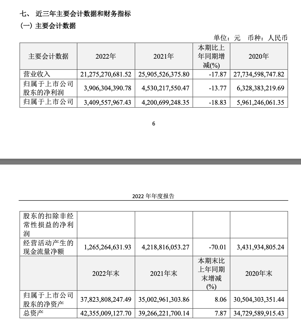 4月21日盘后,江苏恒瑞医药股份有限公司(恒瑞医药,600276)公布2022年业绩报告,期内实现营业收入212.75亿元,同比下降17.87%;归属于母公司的净利润39.06亿元,同比下降13.77%;归属于公司股东的扣非净利润34.1亿元,同比下降18.83%。