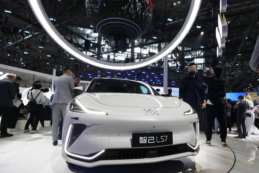 2023上海车展期间,参观者走在上汽集团智己品牌展台上。新华社记者方喆摄