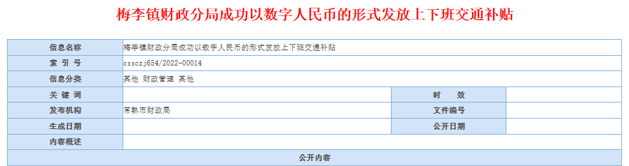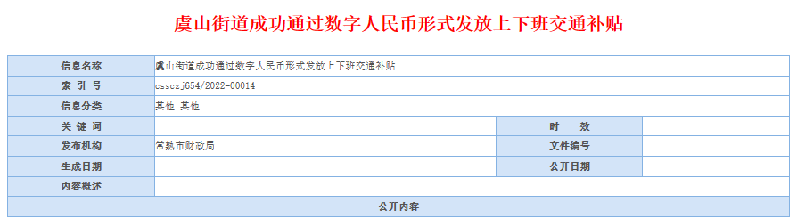 此前,常熟部分区域的在编工作人员补贴发放,已由传统的发放至工资卡改为发放至数字钱包。据常熟市人民政府官网公开信息,从去年10月起,虞山街道公务员(参公)、事业人员和梅李镇在编工作人员,开始通过数字人民币形式发放工资中的上下班交通补贴。