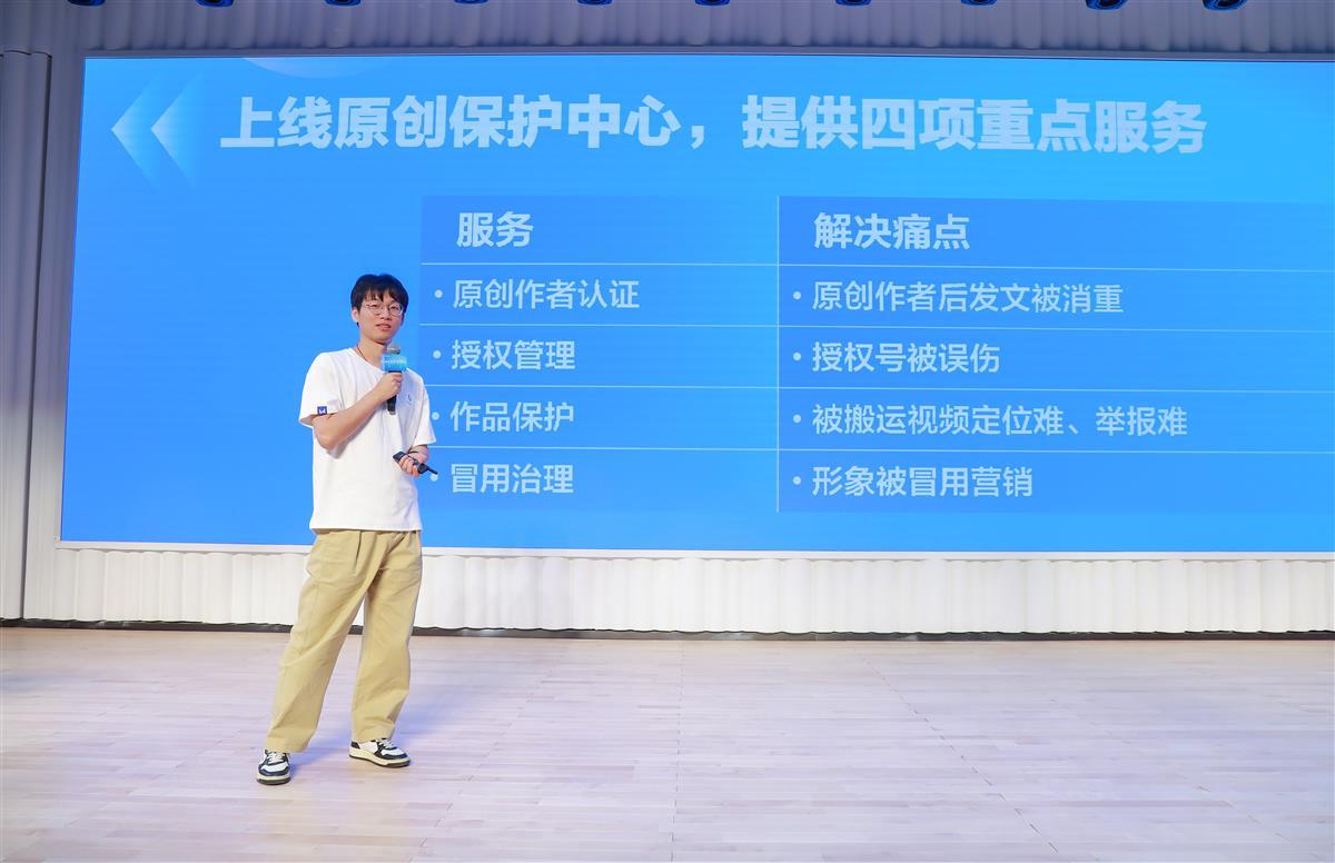 开放日上,抖音宣布,升级原有的原创者联盟,正式上线抖音原创保护中心,为创作者带来包括“治理仿冒”在内的更多服务。“创作者维权时的一大痛点,就是自身视频被搬运”,抖音内容产品经理陈曙介绍。另外,原创保护中心还推出了“原创作者认证”“授权管理”等服务。