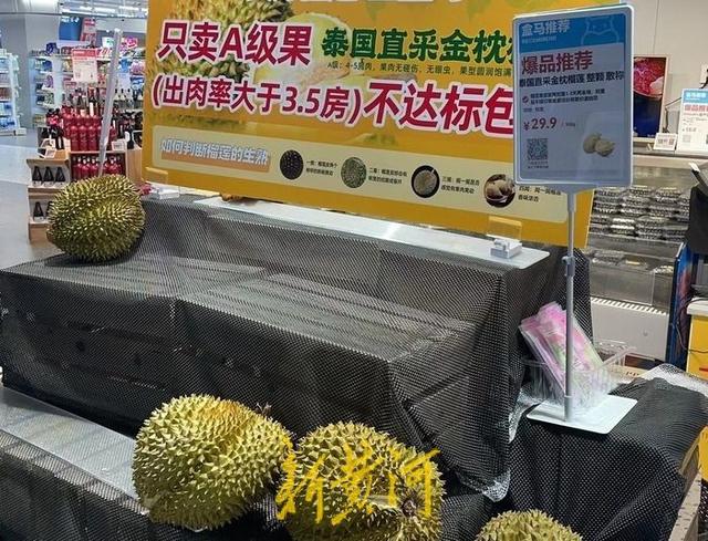 新黄河记者发现,在济南街边的不少水果店里,榴莲的价格基本都在25元左右。而在历下区的一家超市内,在售的金枕榴莲以每斤29.9元的价格,被选入爆品推荐的行列。不少市民纷纷选购,货架上摆放的榴莲已所剩不多。“我们店铺售卖的榴莲,都是从泰国直采的A级榴莲,保证果肉无碰伤、无眼虫。”超市工作人员介绍。