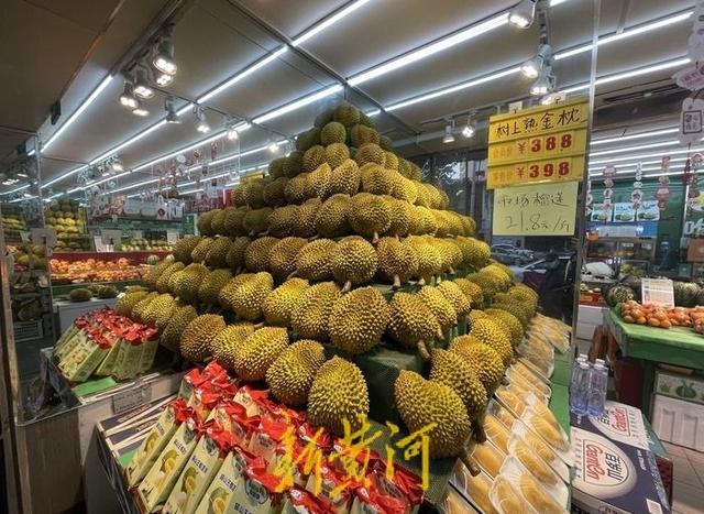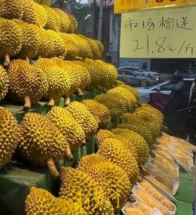 “榴莲价格确实便宜不少,一箱六个装的泰国金枕榴莲,价格从上个月的1600元左右降到1000元左右了。每箱便宜四五百元,折合每公斤便宜30多元。”吕杰说。