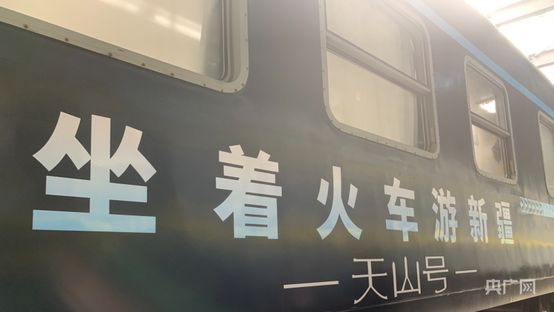 “坐着火车游新疆·天山号”专列外部(央广网发王丽摄)