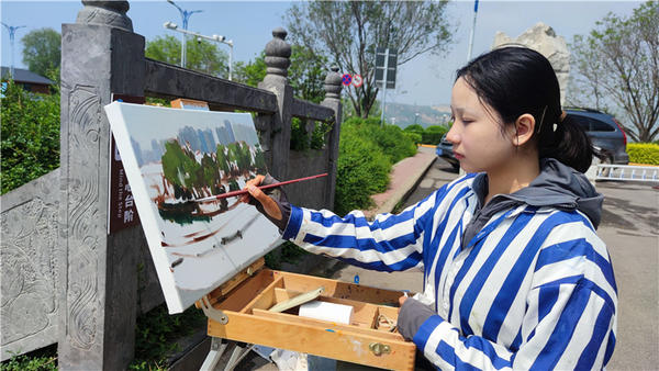 “画得太漂亮啦!”4月28日,三门峡市天鹅湖国家城市湿地公园观景平台上,中央美院大四学生王怡蒙拿着画笔一边向湖中观察,一边在画板上勾勒、涂抹。不一会儿,远处隐约的高楼,近处湖心婆娑的柳树跃然纸上,赢得游客纷纷称赞。