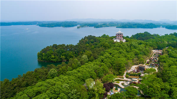 坐上景区观光车,沿着湖畔“彩虹道”,驶过气势恢宏的水库大坝、枕涛观澜的望湖轩,穿过流光溢彩的“网红桥”,只见蓝天白云下,湖面微波荡漾,空气中茶香弥漫,不觉间游艇码头就到了。