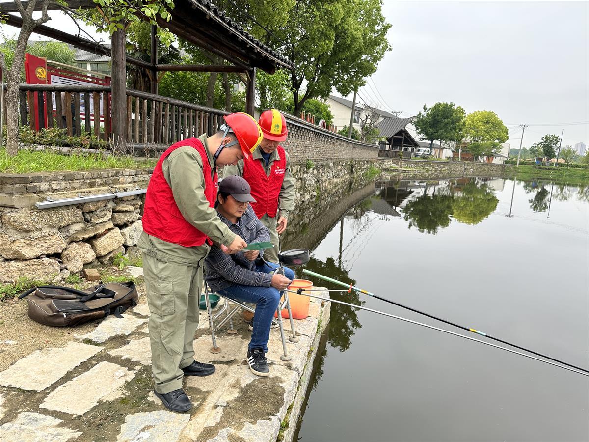 “师傅,赶紧收杆,您看您头顶就有高压线,一旦碰到后果非常严重。”4月29日,国网武汉供电公司“鄂电红马甲”党员服务队在武汉市东西湖区蔡家大队3号台区开展“远离触电风险,保护生命安全”宣传活动,发放安全用电手册,提醒钓鱼爱好者严格遵守法律法规,远离高压线。
