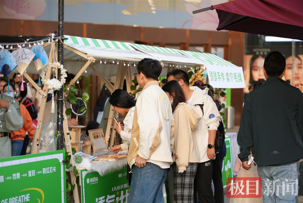 极目新闻记者在银泰创意城一楼户外看到,烘焙、咖啡、鲜花、汉服等特色摊位前,不少年轻人前来打卡。银泰创意城相关负责人介绍,五一期间商场推出了“透气计划”集市,还组织了陆冲、露天电影等多种好吃好喝好玩儿的户外活动,五一假期第一天的客流就达到了去年同期的两倍。
